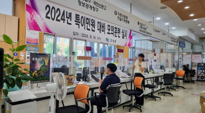 아울러 실제상황에서 체계적이고 신속하게 대응할 수 있도록 민원실 및 14개 읍면 민원실에서는 반기별 경찰 합동 특이민원 비상상황 대비 모의훈련을 매년 실시하고 있다.