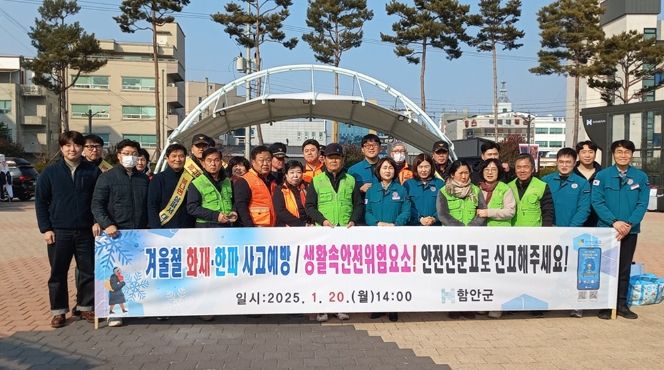 이날 캠페인에는 군, 함안소방서, 함안지방공사, 안전보안관 등 30여 명이 참여했으며, 설 명절을 앞두고 전통시장을 찾은 방문객과 시장 상인들을 대상으로 ▲겨울철 화재·한파 사고예방 수칙 ▲‘겨울철 재난·안전위험요인 집중신고제’ 등의 내용을 적극적으로 홍보했으며, 재난예방 안전신문고 홍보물도 배부했다.
