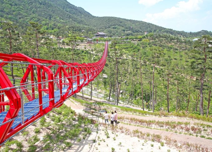 특히 동의보감촌 랜드마크 무릉교는 남동쪽으로 흘러내려가는 무릉계곡 위를 걸으며 왕산과 필봉산의 경치를 만끽할 수 있어 큰 인기를 끌고 있다.