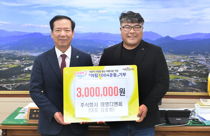 ㈜대명디앤씨(대표 김중화)는 사업 이윤을 사회에 환원하고자 300만 원을 기탁하며 "작은 정성이지만 어려운 이웃들에게 도움이 되길 바란다. 앞으로도 지역사회 발전을 위해 노력하겠다"라고 밝혔다.