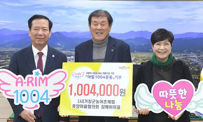 [경남도민뉴스=백형찬 기자] 거창군 아림1004운동에 각계각층의 따뜻한 손길이 이어지고 있다. 지난 3일 ㈜대명디앤씨, 거창농식품수출진흥협회, (사)거창군농어촌체험휴양마을협의회 참깨비마을이 후원금을 기탁하며 지역사회 나눔 문화 확산에 힘을 보탰다.