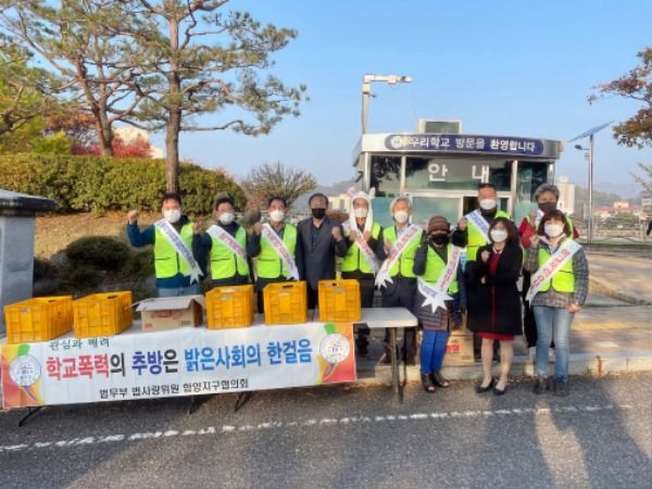 [경남도민뉴스] 법무부 법사랑위원 함양지구협의회(회장 정구상)는 4일 오전 함양 제일고등학교(교장 정병주) 정문에서 학교폭력예방을 위한 캠페인 활동을 펼쳤다.