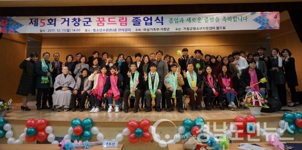 (거창/최병일) = 거창군(군수 양동인)은 지난 11일 ‘사람이 아름다워’란 주제로 거창군청소년수련관 3층에서 청소년상담축제와 꿈드림 졸업식 행사를 양동인 군수, 김종두 군의회 의장, 김향란 군의원, 1388청소년지원단, 교육청, 경찰서 등 유관기관 및 청소년과 졸업생, 가족, 친지 등 300여 명이 참석한 가운데 성황리에 개최했다.