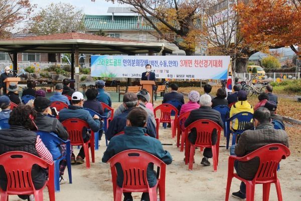 이날 대회에는 안의면과 수동면, 백전면 등에서 60여명의 그라운드 골프회원들이 참여하여 선의의 경쟁 속 화합의 장을 마련했다.