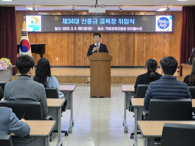 [경남도민뉴스=백형찬 기자] 신종규가 제34대 거창교육지원청 교육장으로 공식 취임했다. 3월 4일 화요일, 신 교육장은 취임식에 앞서 거창 창남초등학교에서 새 학년을 맞이하는 아침 행사에 참여하며 학생들을 응원했다. 이후 거창교육지원청으로 이동해 취임식을 진행하며 직원들과 인사를 나눴다.