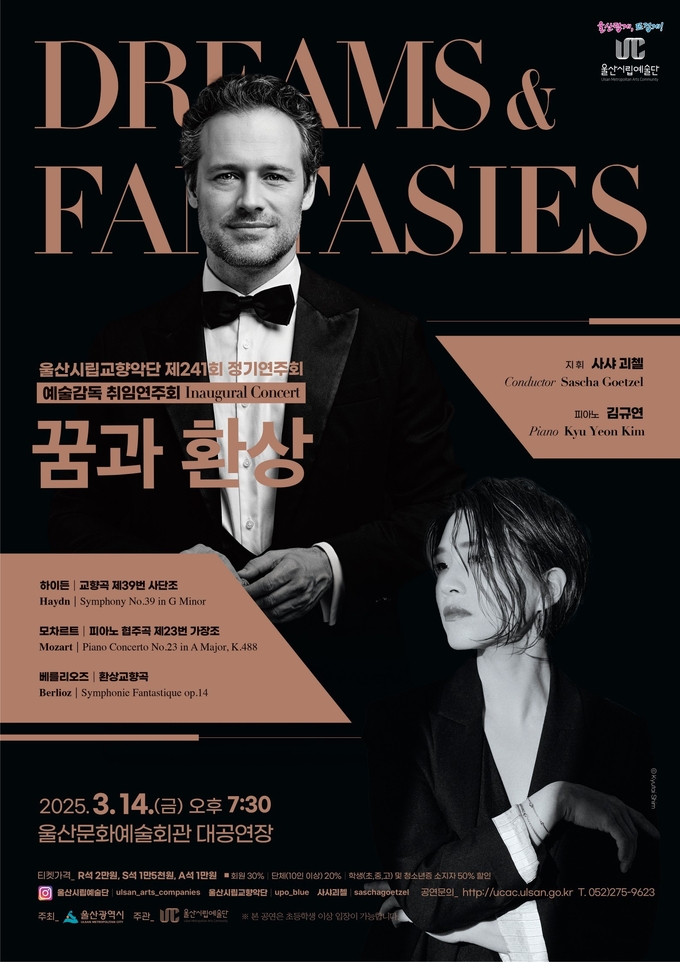 [경남도민뉴스=최재경 기자] 울산시립교향악단은 오는 3월 14일(금) 오후 7시 30분 울산문화예술회관 대공연장에서 마에스트로 사샤 괴첼의 예술감독 겸 상임지휘자 취임연주회 ‘꿈과 환상(Dreams & Fantasies)’ 무대를 마련한다.