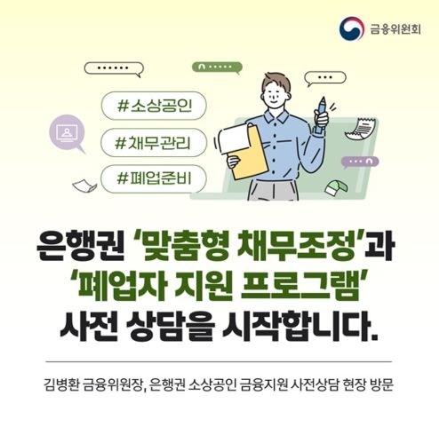 [경남도민뉴스=백형찬 기자] 은행권 '맞춤형 채무조정'과 '폐업자 지원 프로그램' 사전상담을 시작합니다.