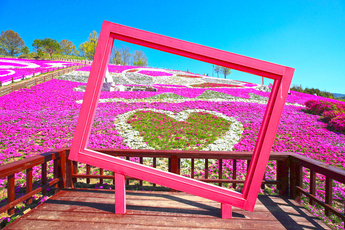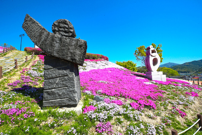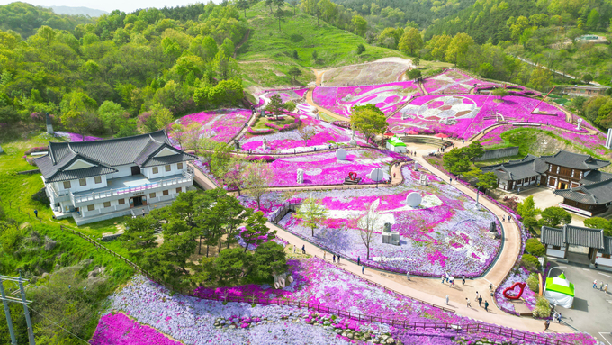 3만㎡ 규모의 공원 터에는 화려한 꽃잔디가 만개, 분홍색 카펫이 깔린 야외미술관에 서 있는 듯한 이색적인 볼거리를 제공한다.