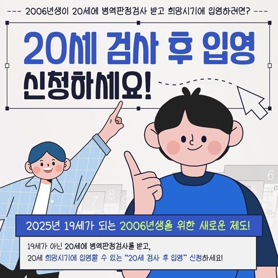 19세가 아닌 20세에 병역판정검사를 받고, 20세 희망시기에 입영할 수 있는 "20세 검사 후 입영" 신청하세요!