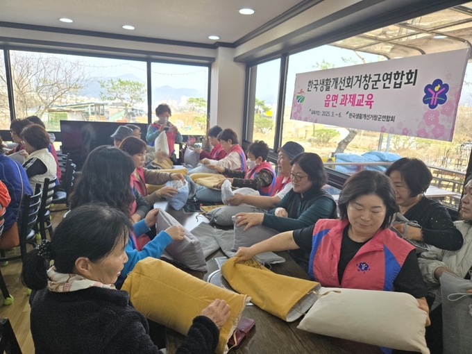 [경남도민뉴스=백형찬 기자] 한국생활개선회 거창군연합회는 전통 규방공예의 계승과 회원 역량 강화를 위해 3월 7일부터 24일까지 관내 12개 읍면을 대상으로 '메밀베개 만들기' 공동과제 수업을 실시했다. 이번 수업은 전통 규방공예를 현대적으로 재해석하고 옛 문화를 되새기기 위해 기획됐으며, 회원들은 직접 천을 재단하고 바느질하여 메밀베개를 완성하는 과정을 통해 전통 수공예의 가치와 중요성을 체험했다.