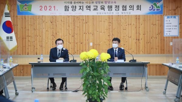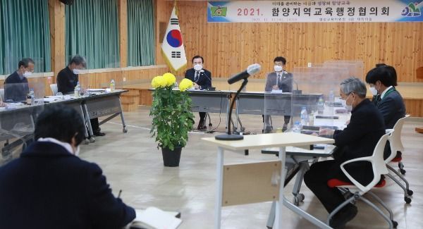 [경남도민뉴스] 함양군과 함양교육지원청은 11일 교육지원청 3층 대회의실에서 지역의 현안 논의와 교육․행정의 화합을 위한 2021 함양교육행정협의회를 가졌다.