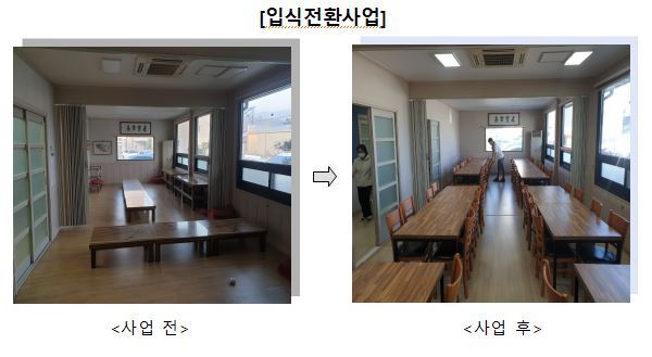 시설개선에 투자가 어려운 자영업자에게 시설개선을 지원해 노후화된 주방환경을 개선하고 좌식 테이블을 입식으로 전환하는 사업을 추진하고 있다.