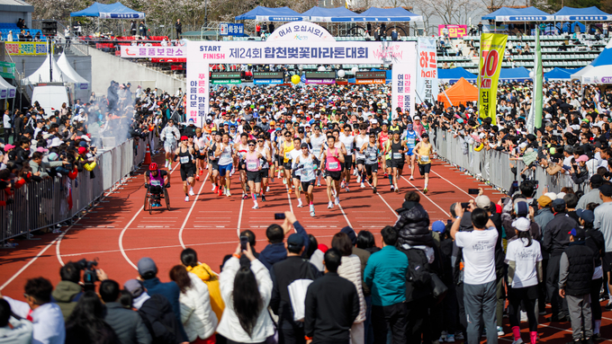 [경남도민뉴스=김춘호 기자] 합천군이 주최하고 합천군체육회가 주관한 제24회 합천벚꽃마라톤대회가 지난 3월 30일 합천공설운동장 및 합천 100리 벚꽃 마라톤코스 일원에서 차분하고 절제된 분위기 속에 개최됐다.