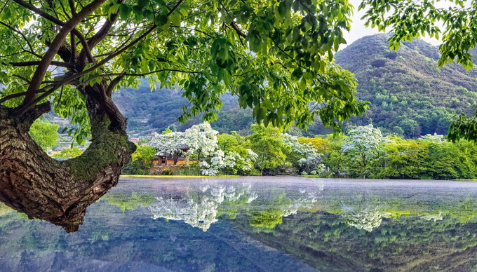 위양지의 이팝나무는 봄부터 초여름까지 즐길 수 있는 장관이다.