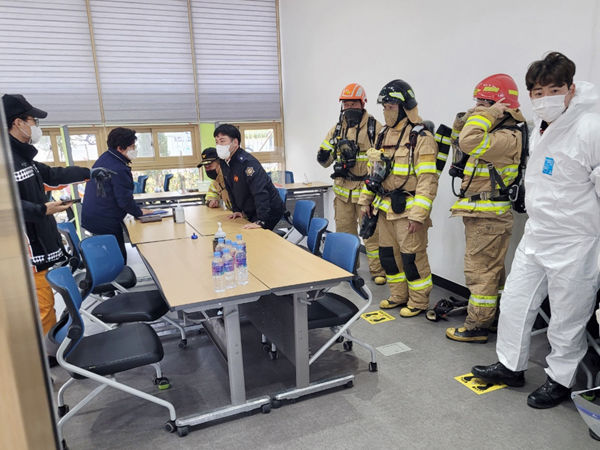 이번 합동훈련은 코로나19 관련시설 내 화재취약요인 제거 및 화재 대응능력 강화 및 예방을 위해 관련 소방서와 보건소 관련인원 30여명이 참여하였다.