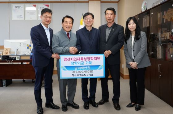 [경남도민뉴스=최미정 기자] 양산시인재육성장학재단(이사장 이희종)은7일 양산시하수도공기업에서 지역 인재 육성을 위한 장학금 200만원을 기탁했다고 밝혔다.