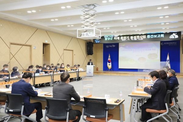 이를 위해 군은 지난 15일 오후 군청 대회의실에서 서춘수 군수 주재로 전 국장 및 부서장, 함양군의회, 산업연구원 등이 참석한 가운데 함양군 미래 중장기 신사업 발굴 연구용역 중간보고회를 개최했다.