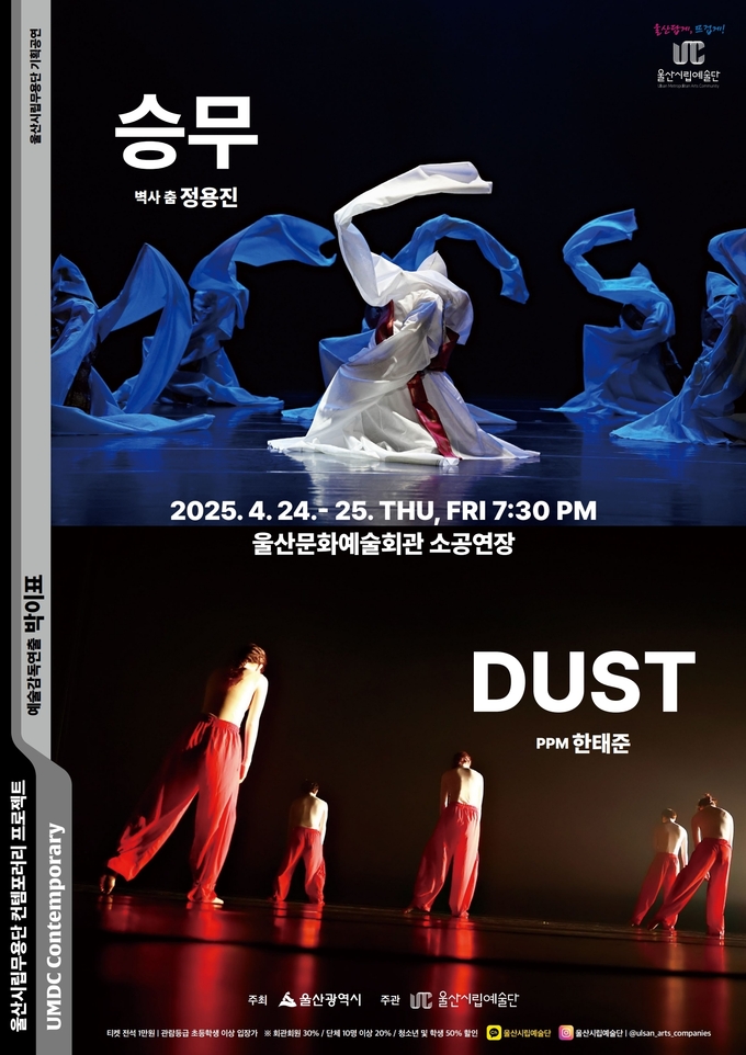 [경남도민뉴스=최재경 기자] 울산시립무용단이 4월 24일과 25일 양일간 오후 7시 30분 울산문화예술회관 소공연장에서 기획공연 ‘울산시립무용단 유엠디시(UMDC) 컨템포러리(UMDC Contemporary)’를 선보인다.