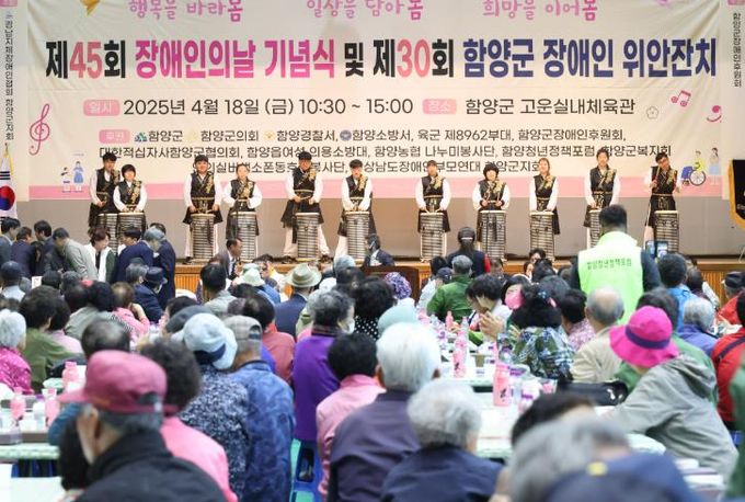 [경남도민뉴스=장광동 기자] 함양군은 지난 4월 18일 고운체육관에서 (사)경남지체장애인협회 함양군지회 주최로 ‘제45회 장애인의 날 기념식 및 제30회 함양군 장애인 위안잔치’를 성황리에 개최했다고 밝혔다.