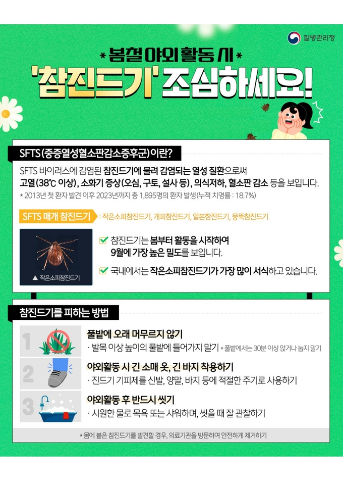 현재 SFTS는 백신이나 치료제가 없어 야외활동 시 긴 옷, 목이 긴 양말 착용 등 사전 예방이 최선이다.