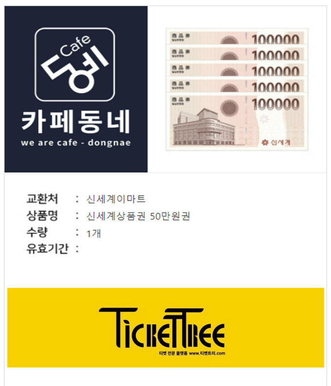 소비자가 커피 머신을 330만원(부가세 포함)에 구매하고 사은품으로 티켓트리 할인권 600만원 + 30만원 상당 원두 3kg를 받는다. 구매자는 커피도 마시면서 사은품으로 받은 티켓트리 할인권을 상품권으로 바꿔 매일 재테크를 하여 600만 원을 수익으로 만든다.