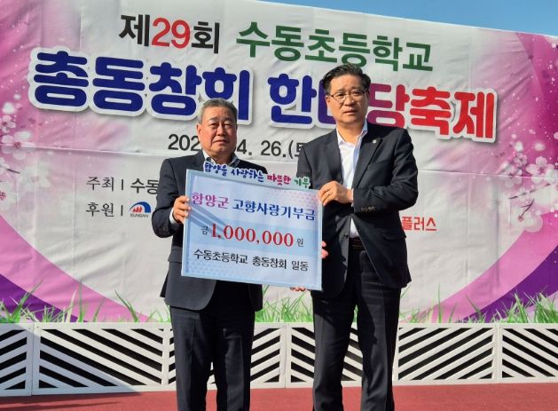 [경남도민뉴스=장광동 기자] 함양 위림초등학교 총동창회(회장 이용권)와 수동초등학교 총동창회(회장 서영재)는 지난 26일, 각 모교에서 열린 총동창회 행사에서 고향사랑기부금을 100만 원씩을 기탁하며 고향에 대한 깊은 애정을 전했다.