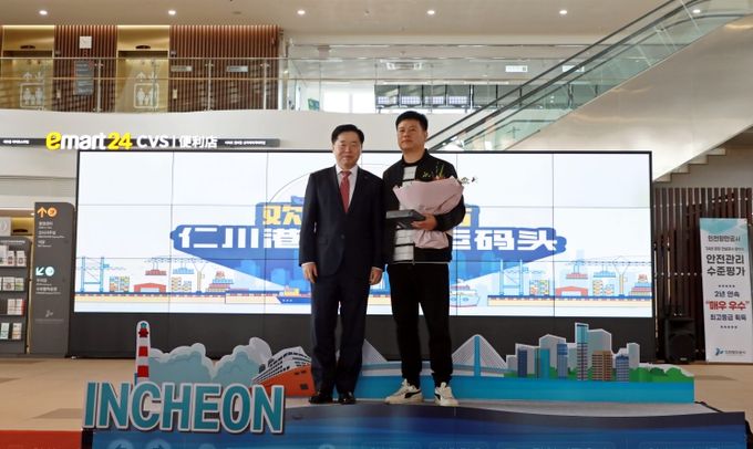 이날 인천항만공사 이경규 사장과 단동국제항운(유) 이용국 한국 대표는 여객 운송 재개 환영의 의미로 인천항 국제여객터미널 2층 통합홀에서 첫 여객과 선장에게 꽃다발, 기념패를 증정했다.