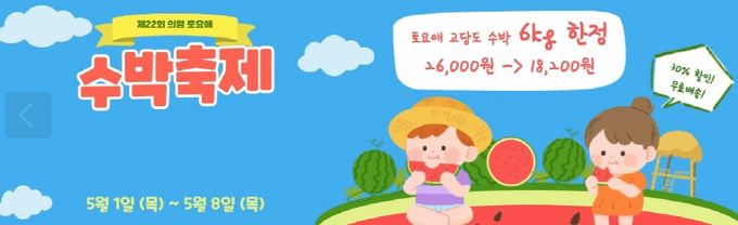 토요애 수박 6kg 한정 30% 할인과 무료배송을 진행한다.