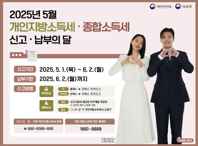 [경남도민뉴스=장광동 기자] 함양군은 2024년 귀속 종합소득세와 개인지방소득세 확정 신고·납부 기간을 5월 1일부터 6월 2일까지 운영한다고 밝혔다.