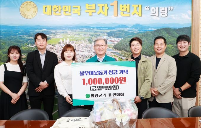 [경남도민뉴스=이상민 기자] 의령군4-H연합회(대표 박성재)은 지난 1일 의령군청을 방문해 지난 제50회 의령 홍의장군 축제에서 체험 부스, 농산물 판매 부스 등을 운영한 수익금 100만원을 이웃돕기 성금으로 기탁했다.