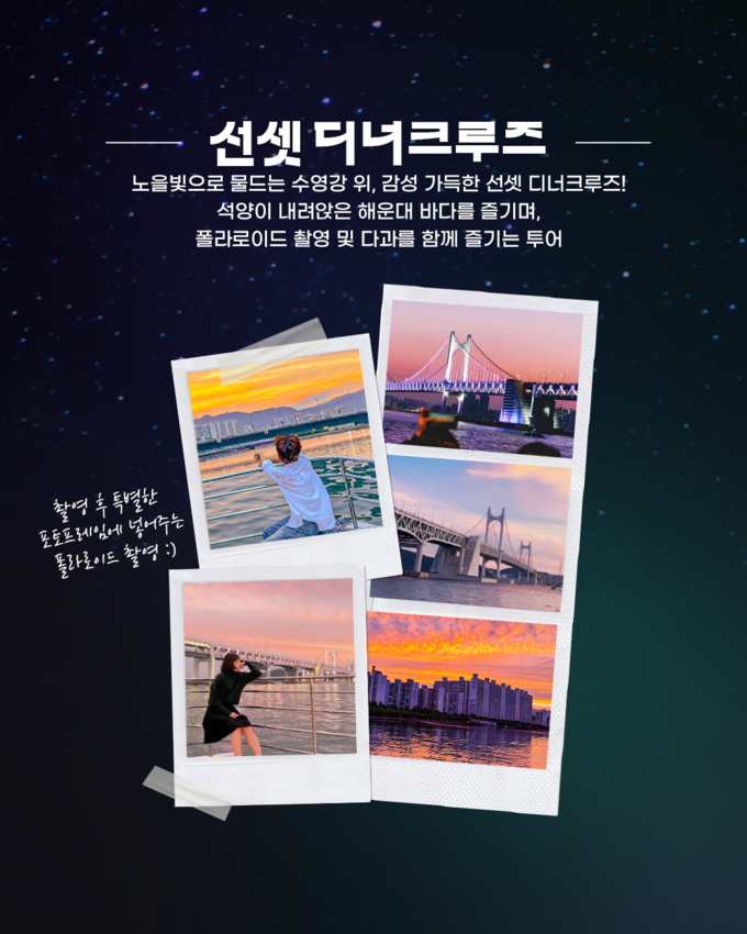 - 사진 촬영: 선셋 디너 크루즈 시간대 폴라로이드 사진 촬영 서비스