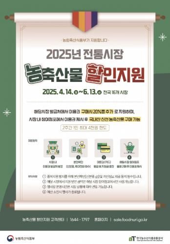 시 관계자는 “이번 사업은 전통시장을 찾는 소비자들에게도 정부의 농축산물 할인 혜택을 제공하기 위해 마련된 것”이라며, “특히 고령층 등 시장 이용자들의 장바구니 부담을 덜어주는 계기가 되기를 기대한다”고 전했다.