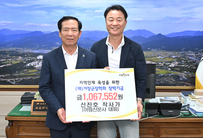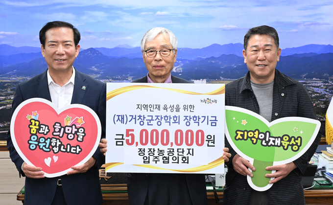 [경남도민뉴스=백형찬 기자] (재)거창군장학회는 지난 13일 지역인재 육성을 위해 정장농공단지입주협의회에서 500만 원, 김중연 주식회사 정연포장상사 대표가 500만 원, 신진호 작사가(아림신문사 대표)가 약 107만 원을 각각 장학금으로 기부했다고 밝혔다.