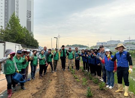 이에 그동안 지역의 꽃밭‧꽃길 조성에 앞장섰던 새마을부녀회를 비롯한 사회단체들이 의기투합하여 수국 130여 그루, 메리골드, 댑싸리 등 초화류 500여 주를 심고 물 주기와 제초 등 관리에도 심혈을 기울여 아름다운 꽃밭을 조성하기로 했다.