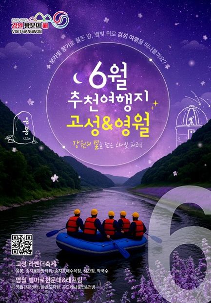 [경남도민뉴스=백형찬 기자] 강원관광재단은 ‘2025-2026 강원 방문의 해’ 6월 추천 여행지로 고성군과 영월군을 선정하여 대대적인 홍보마케팅을 추진한다고 밝혔다.