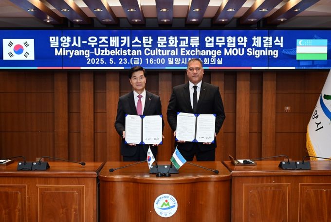 [경남도민뉴스=나희준 기자] 밀양시는 23일 시청 소회의실에서 우즈베키스탄 문화부와 문화교류 업무협약을 체결했다고 밝혔다.