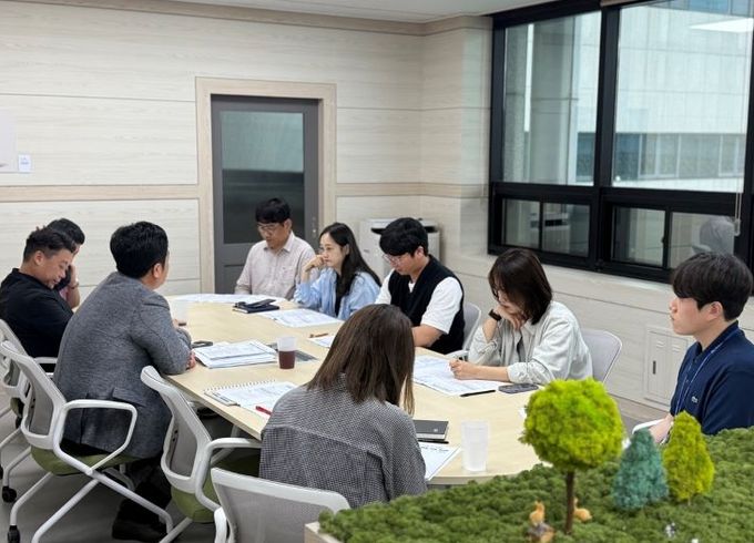 회의는 스마트오피스 공간 내 유연하게 구성할 수 있는 가변형 원탁 테이블을 활용해 보다 자유롭고 편안한 분위기에서 진행됐다.
