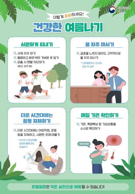 구인모 거창군수는 “때이른 무더위 속 온열질환에 취약한 어르신과 만성질환자는 폭염 시 실외활동을 자제하고 불가피한 경우 수분섭취 등 건강수칙을 준수해 건강한 여름 보내시길 바란다”라고 말했다.