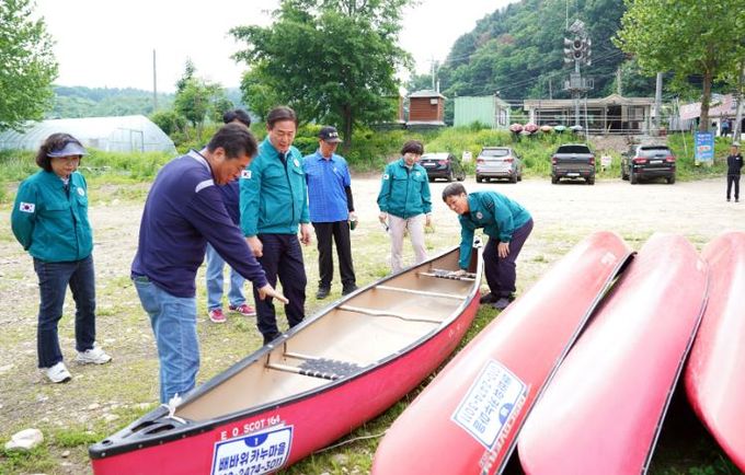 [경남도민뉴스=표재민 기자] 신영재 홍천군수는 5월 28일 본격적인 행락 철이 시작됨에 따라 홍천군 대표 관광지인 팔봉산 유원지, 마곡유원지 등 서면 일원에 있는 수상 레저 사업장 및 물놀이 안전관리 지역에 대한 점검에 나섰다.