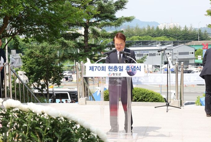 [경남도민뉴스=최민숙 기자] 청도군은 6월 6일 김하수 청도군수를 비롯한 전종율 군의장, 이선희 도의원, 보훈단체장과 보훈가족, 각급 기관단체장 등 1,000여명이 참석한 가운데'제70회 현충일 추념식'을 거행했다. 이날 추념식은 조국을 위해 목숨을 바친 순국선열과 호국영령들의 숭고한 희생정신을 추모하기 위해 마련됐다.