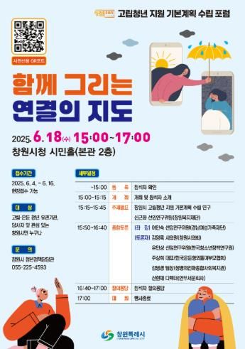 토론에는 김영록 창원특례시의회 시의원, 유민상 한국청소년정책연구원 선임연구위원, 주상희 한국은둔형외톨이부모협회 대표, 김영경 생명의전화종합사회복지관 팀장, 신현재 안무서운회사 디렉터 등이 패널로 참여한다.