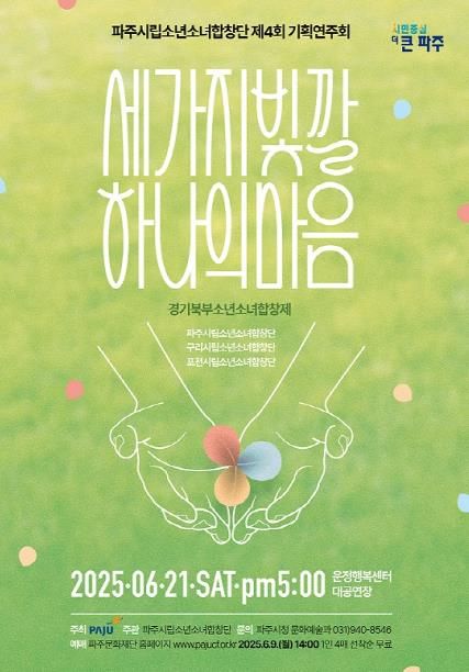 [경남도민뉴스= 기자] 파주시가 오는 21일 운정행복센터 대공연장에서 ‘세 가지 빛깔 하나의 마음’이라는 부제를 내건 파주시립소년소녀합창단 제4회 기획연주회를 개최한다.