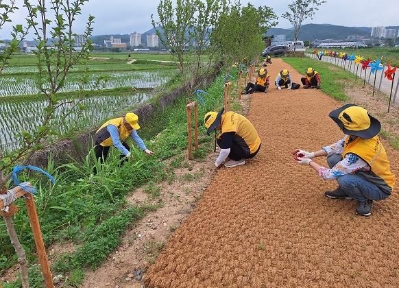 갈곡천은 파주읍 주민들이 이용하는 생활체육 공간으로, 주민들이 왕래가 많은 곳이다. 이번 활동은 갈곡천 일대 산책로의 잡초와 쓰레기 투기 문제를 해소하고, 장마철 이전에 산책로를 정비해 안전한 보행 환경을 제공하고자 마련됐다.