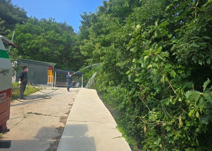 올해 공동방제는 최근 산불 피해를 입은 석보면 일대를 중심으로 진행됐으며, 전문 방제관 및 유관기관 인력 30명과 함께 방제차량 및 SS기를 동원하여 철저히 실시했다.
