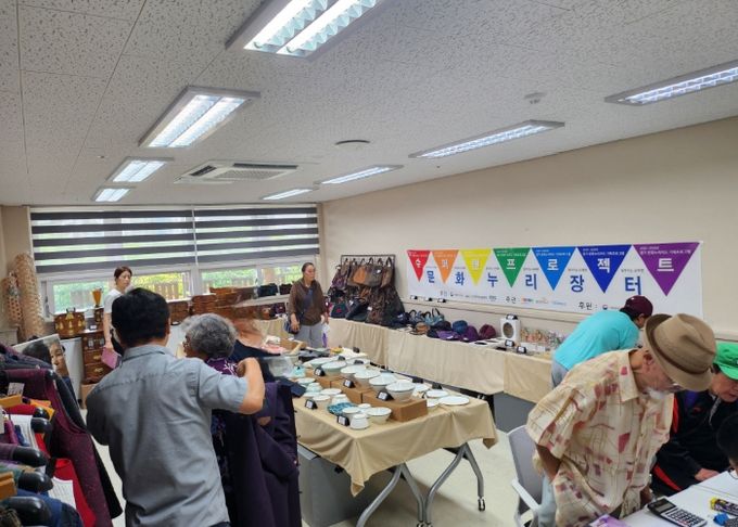 장터에서는 도서, 목공예, 한지 공예, 수공예, 가죽공예품 등 다양한 물건을 전시해 문화누리카드 대상자들이 물건을 직접 보고 구매할 수 있는 기회를 제공했다.