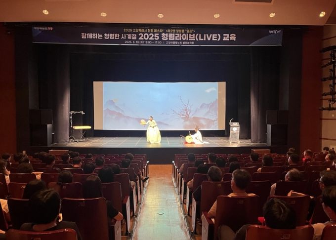 청렴라이브(Live) 교육은 청렴을 사계절과 연계해 직원들이 직접 참여하고 소통하는 ‘2025 고양특례시 청렴페스타’의 여름편으로, 국민권익위원회 청렴연수원이 주관해 공연, 영상 등의 프로그램으로 청렴의 가치를 전달하는 문화융합형 교육이다.