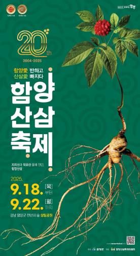 제20회 함양산삼축제는 9월 18일부터 22일까지 경남 함양군 천년의 숲 ‘상림공원’에서 열릴 예정이다.