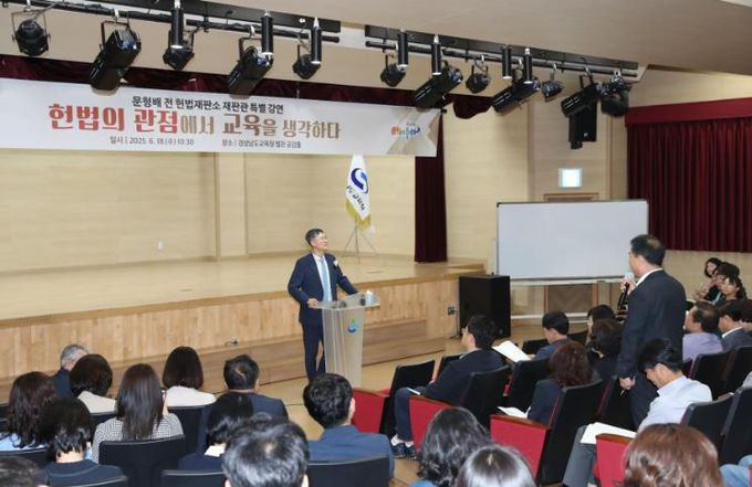 [경남도민뉴스=구인애 기자] 경상남도교육청은 18일 본청 공감홀에서 문형배 전 헌법재판소 재판관을 초청해 특별 강연을 진행했다.