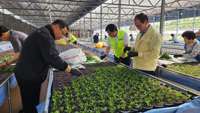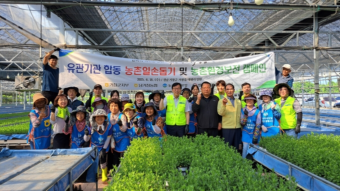 [경남도민뉴스=백형찬 기자] NH농협 거창군지부(지부장 이희열)는 지난 18일 남거창농협(조합장 허원길), 거창군 농가주부모임(회장 최홍순), 법무부 거창준법지원센터(소장 곽성채)와 함께 거창군 거창읍 대평리 화훼하우스(농장주 윤○○) 농장에서 농촌일손돕기 및 농촌환경보전 캠페인을 실시하였다.