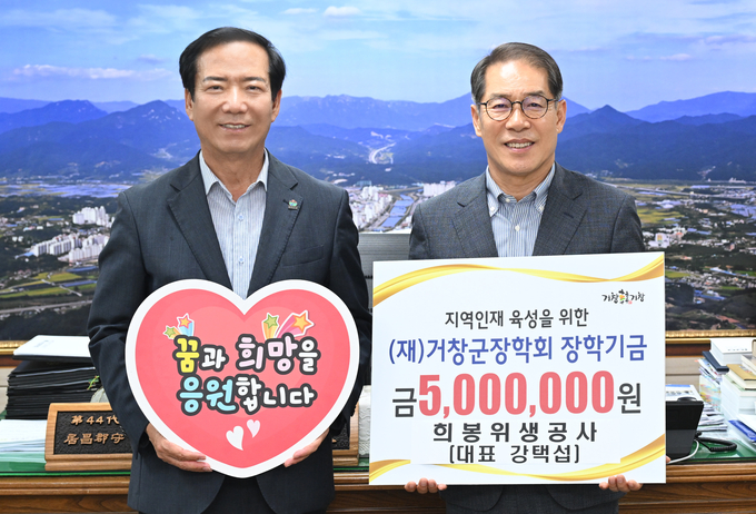 희봉위생공사(대표 강택섭)는 생활폐기물 수집·운반을 대행하며 청결한 환경을 위해 힘쓰는 기업으로, 영업이익의 일부인 500만 원을 ‘거창군 장학회 장학기금 200억 원 확대 조성’에 동참하는 뜻에서 기탁했다.
